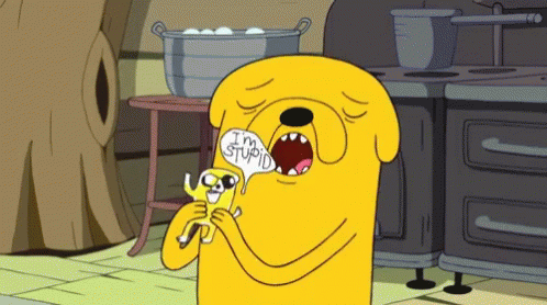 Descrierea conținutului: a cartoon character with a speech bubble that says i 'm stupid on it
