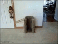 Descrierea conținutului: a cat is playing with a cat tree in a room