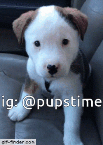 Descrierea conținutului: a brown and white puppy is sitting in the back seat of a car with the hashtag @pupstime
