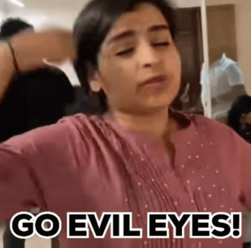 Descrierea conținutului: a woman is making a funny face and saying `` go evil eyes ! ''