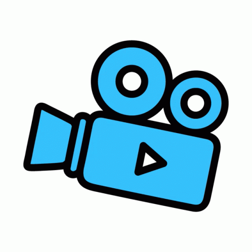 Descrierea conținutului: a blue icon of a video camera with a play button in the middle