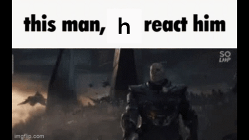 Descrierea conținutului: a meme of a man standing in front of a crowd with the caption this man , h react him
