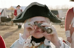 Descrierea conținutului: a man in a colonial hat is looking through a telescope .