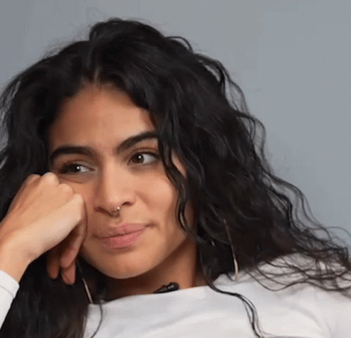 Descrierea conținutului: a close up of a woman 's face with her hand on her chin