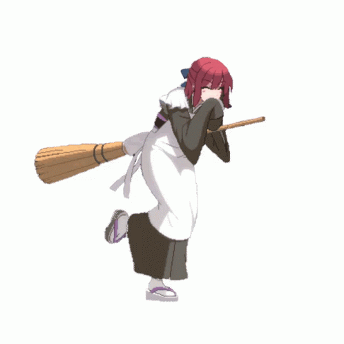 Descrierea conținutului: a girl with red hair is holding a broom in her right hand