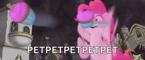 - Descrierea conținutului: pinkie pie from my little pony standing in front of a building with the words petpetpetpetpet written below her