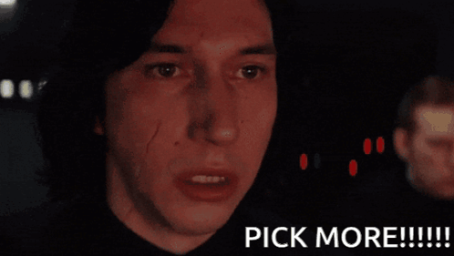 Descrierea conținutului: a close up of a man 's face with the words pick more written on the bottom .
