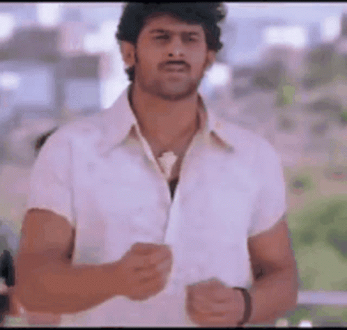 Descrierea conținutului: a man with a mustache is wearing a white shirt and standing with his fist in the air .