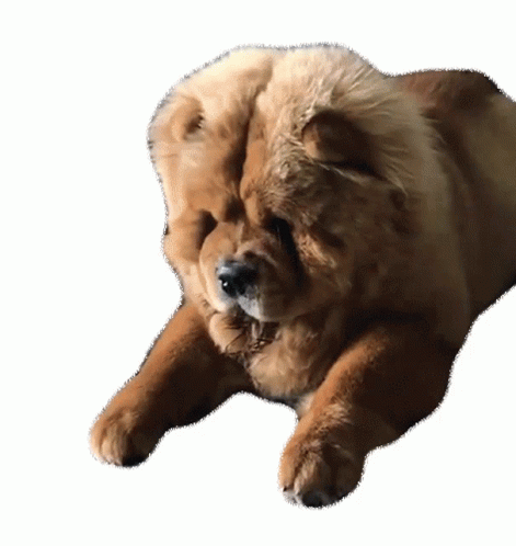 Descrierea conținutului: a chow chow dog is laying down with its eyes closed