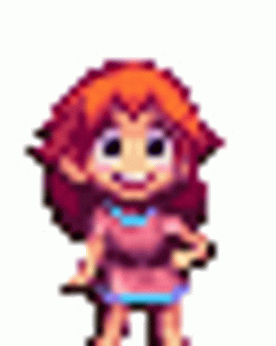 İçerik Açıklaması: a pixel art of a girl in a pink dress with red hair .