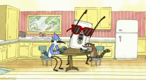 İçerik Açıklaması: a regular show cartoon shows two birds sitting at a table