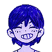 Mô tả nội dung: a pixel art drawing of a boy with blue hair and big teeth .