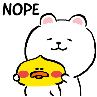 Content Description: a cartoon of a bear holding a yellow duck with the words nope written above it .