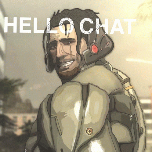 Content Description: a cartoon drawing of a man with the words hello chat on the bottom