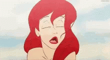 Content Description: a cartoon of ariel from the little mermaid with red hair and a sad look on her face .