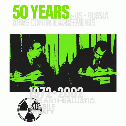Content Description: a poster that says 50 years of us-russia arms control agreements on it