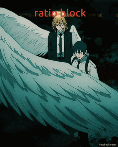 Content Description: two anime characters are standing next to each other with the words ratio-block written above them