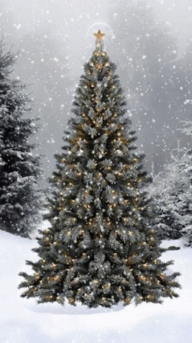 内容说明: a christmas tree with a star on top is in the snow