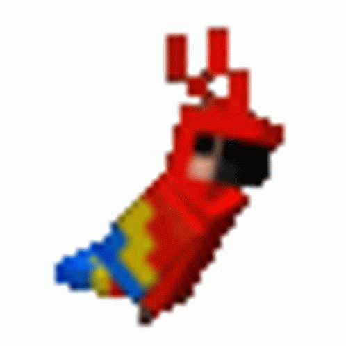 Incazelo Yokuqukethwe: a pixel art of a red parrot with a blue tail and yellow beak .