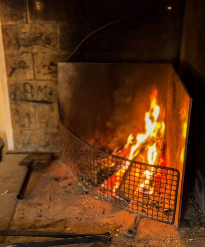 Vid vedspisen kan du värma dig om du känner dig frusen.