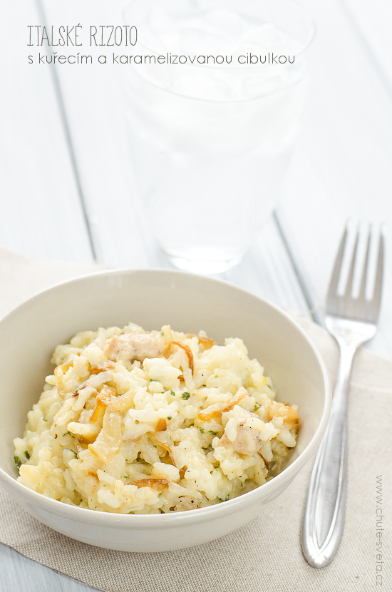 italské rizoto s kuřecím a karamelizovanou cibulkou