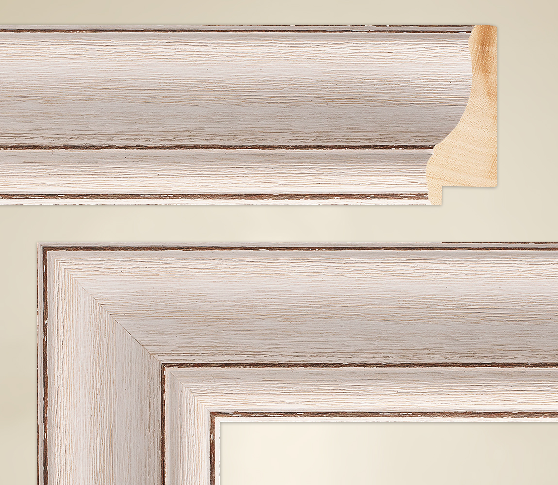 | A fehérre meszelt modellek az Ambiente 2 sorozat festőkeretei között mind igazi szemet gyönyörködtetőek. A Vanessa dekoratív keret fehér, fehérre meszelt kivitelben is ezek közé tartozik. A keret meszelt jellege egyrészt magának a fehérnek köszönhető, másrészt a matt felületnek és a festék különleges felhordási módjának. A 62x32 mm-es valódi fa keretet teljesen meleg fehérre festették. Hőmérséklettel fehér, enyhén vörösesre változik. A matt felület csodálatos struktúrát kapott azáltal, hogy a tervezők szándékosan úgy dolgoztak, hogy a vastag ecsetvonások a néző számára még mindig követhetőek maradjanak. Ezen kívül Vanessán egy faanyagot is feltüntetnek, amely alulról nyomul át a festéken, és szintén szerepet játszik a dizájnmunkában. A külső szélén egy barna vonalat tettek, amely a belső oldalon még kétszer megismétlődik. Mintha ez a barna lenne az alatta lévő fa rétege, látszik, hogy itt tudatosan a divatos vintage stílus irányába dolgoztak. Vanessa így úgy néz ki, mint egy képkeret a régi szép időkből. Ez arra is inspirálja a művészetkedvelőt, hogy a megfelelő motívumokat Vanessával keretbe foglalja. |