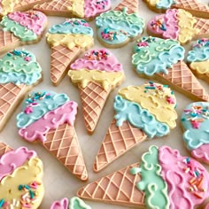 Ice cream cone with sprinkles - royal icing frosted sugar cookies | Summer cookies, Sugar cookie designs, Iced cookies