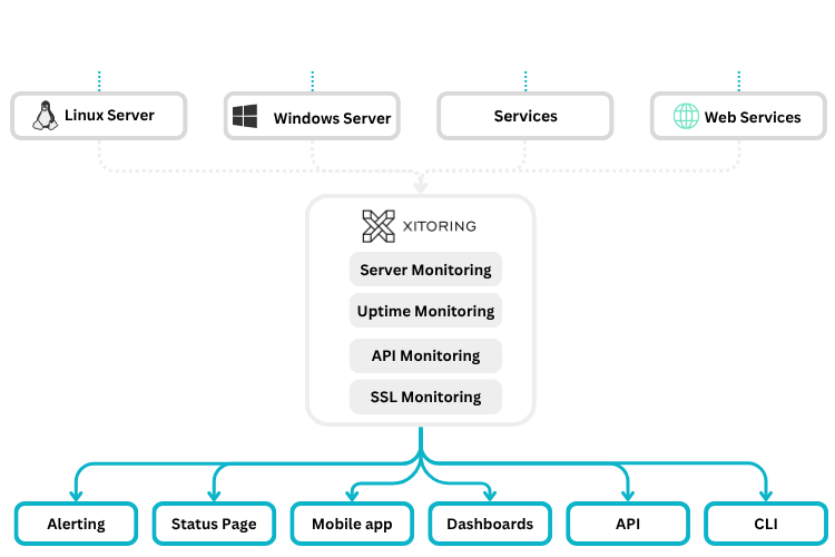 With Xitoring, managing Linux Servers becomes effortless. A simple command deploys Xitogent, our monitoring agent. Your server’s data is continuously relayed to us, and we transform it into insightful visualizations. Automatic triggers, graphs, and uptime checks tailored to your data keep you in control.