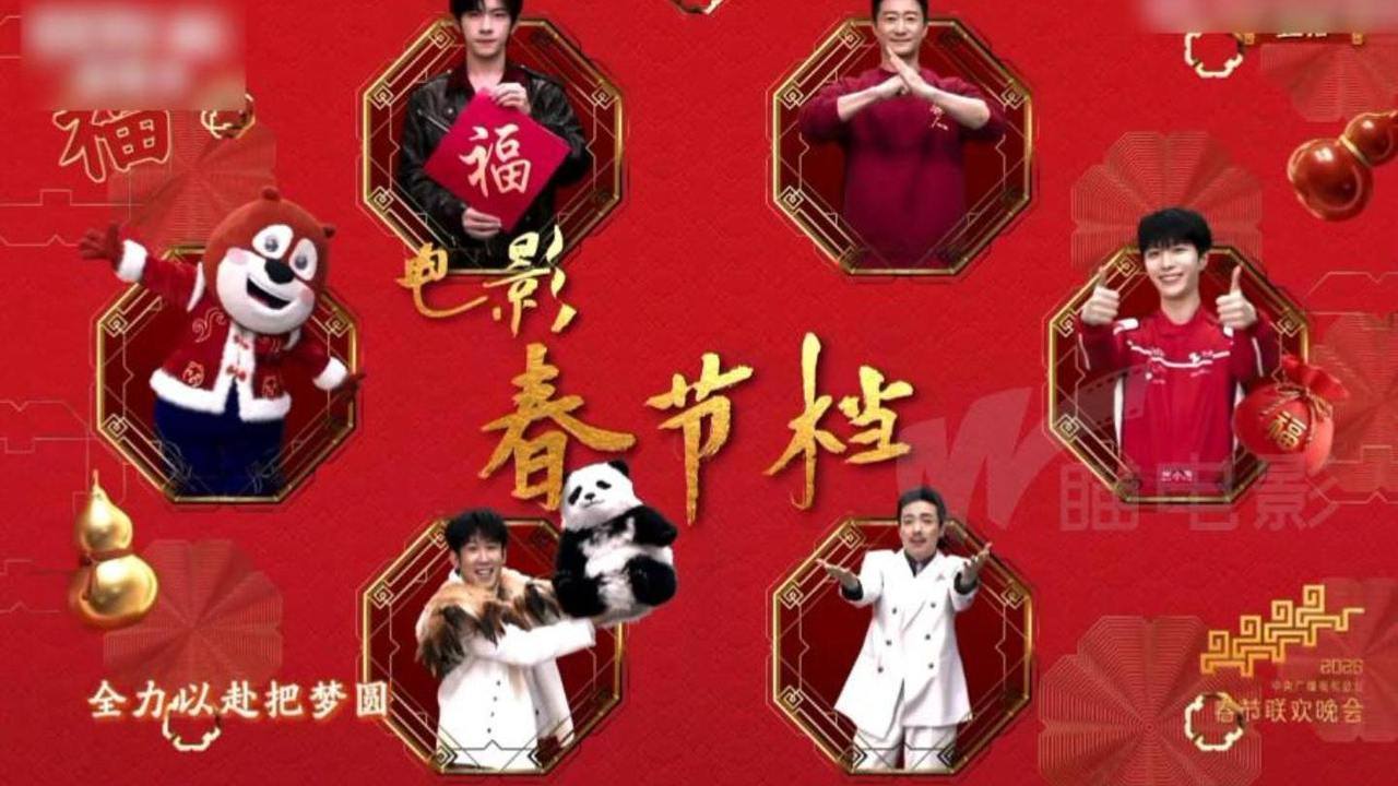 马年春晚舞台,2026年春节档电影集体亮相,包括电影《镖人》《惊蛰无声》《熊出没·年年有熊》《飞驰人生3》《熊猫计划之部落奇遇记》以及浙江出品电影《星河入梦》。