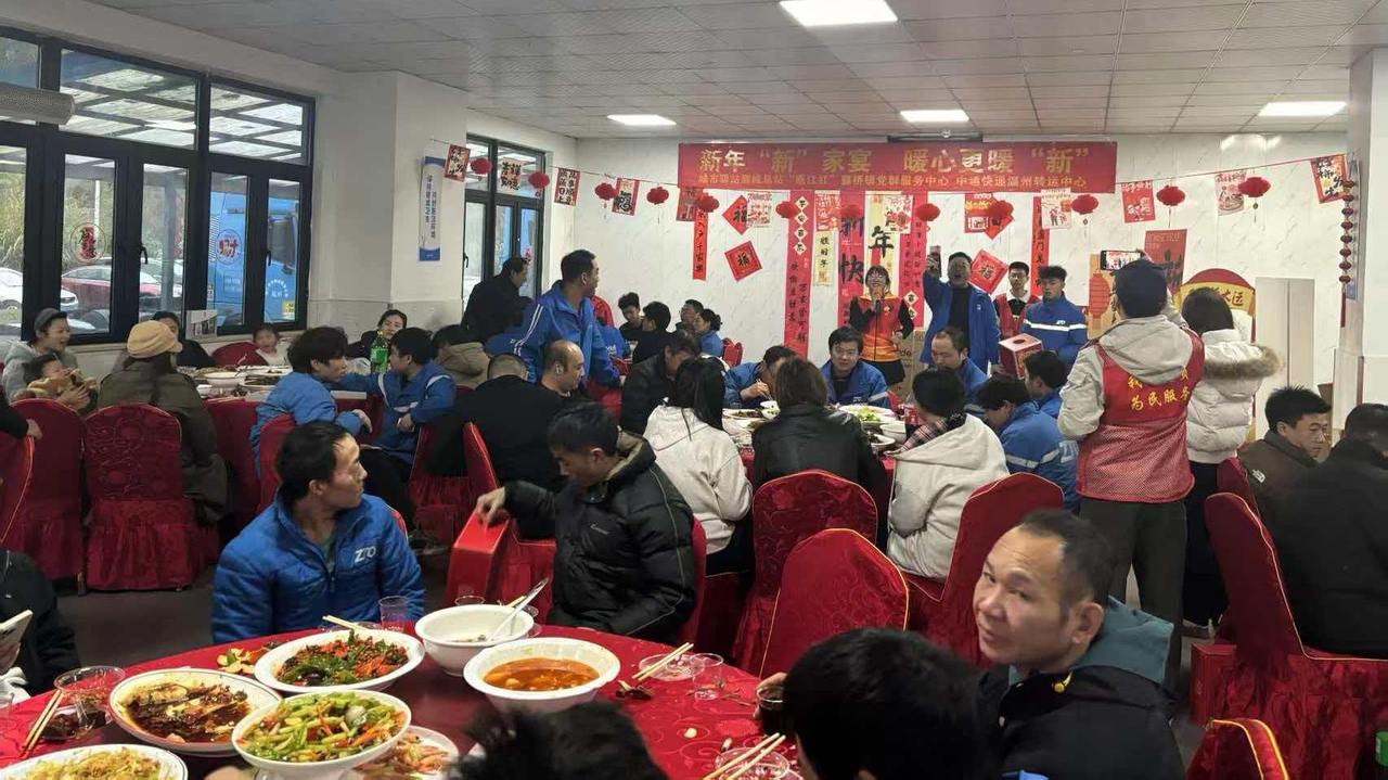 2月16日,城市驿站鹿城总站联合鹿城区藤桥镇党群服务中心、中通快递温州转运中心举办的暖新年夜饭在中通快递温州转运中心食堂举行,200余名快递小哥聚在一起包饺子、吃团圆饭、欢笑闲聊,在第二故乡温州过了一个热热闹闹的除夕。