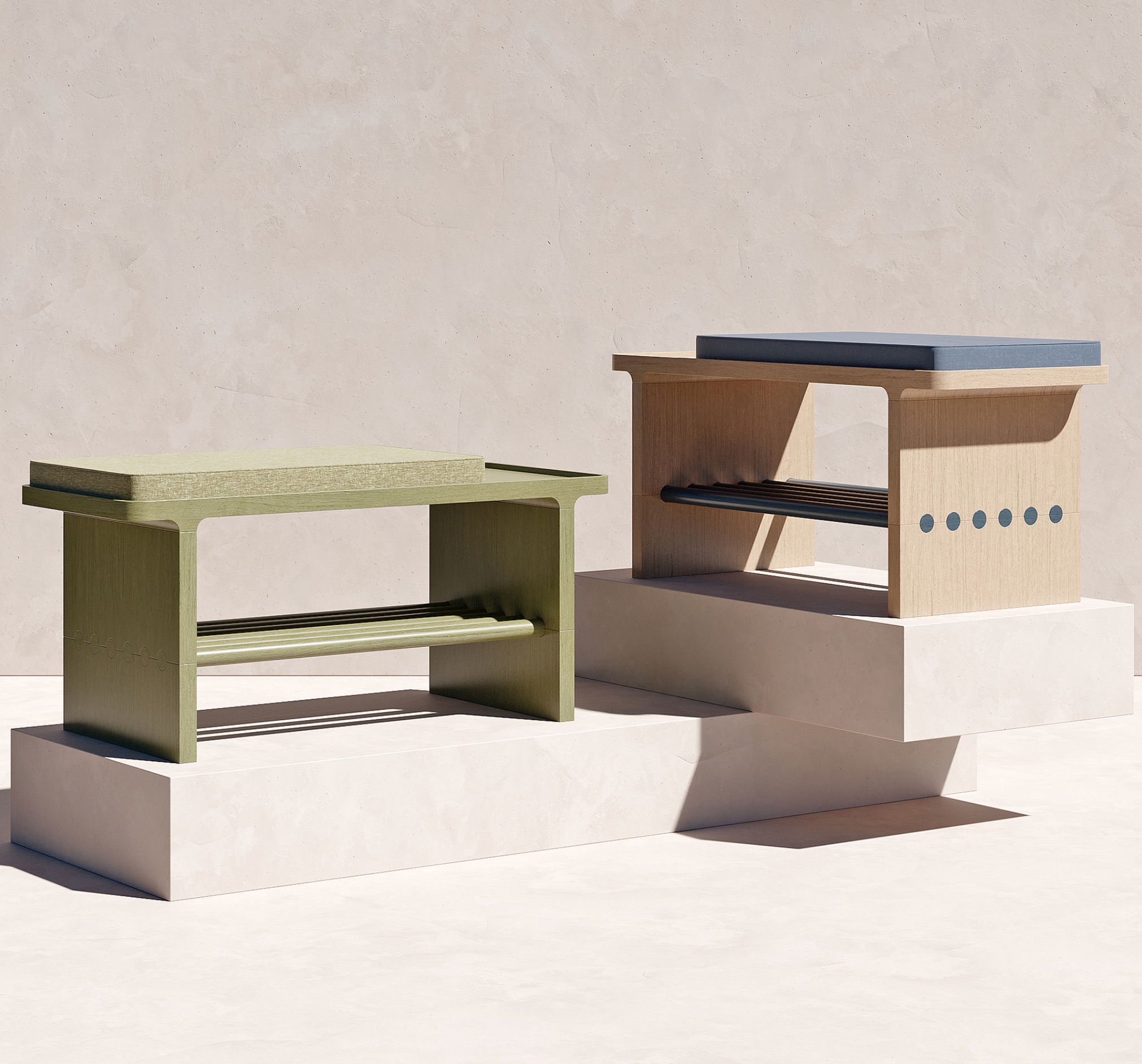 Designed for Tomorrow Furniture, Keeper combines a shoe rack with a bench. The soft seat has rounded corners to seamlessly attach to the recessed top leaving just the right amount of space to work as a side table for daily accessories