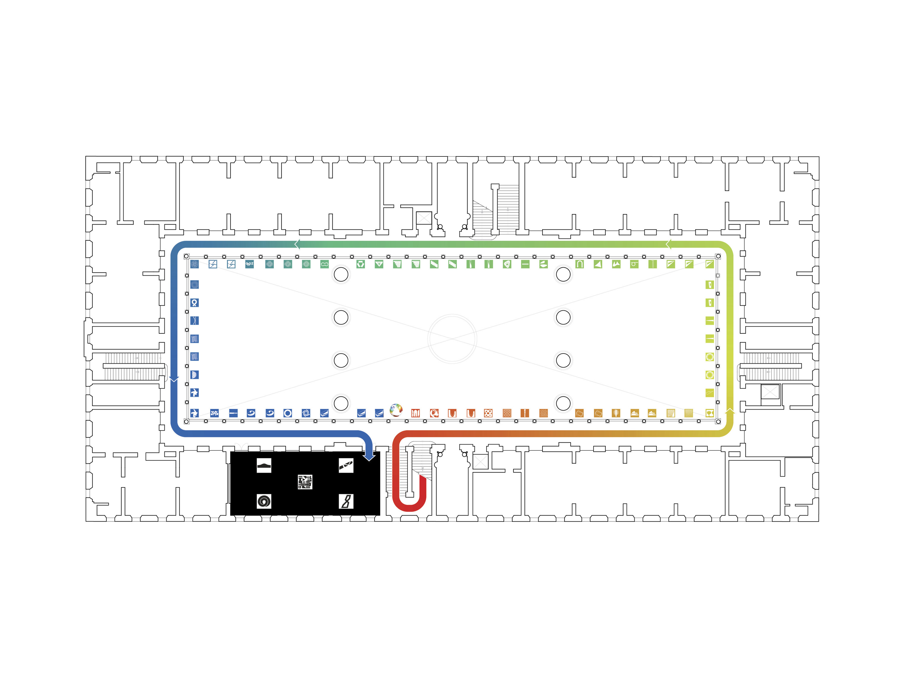 The ground floor office space spans over 1400 m2 across two units. The open-plan design accommodates a generous architectural model workshop, exhibition space, meeting rooms and a VR room.