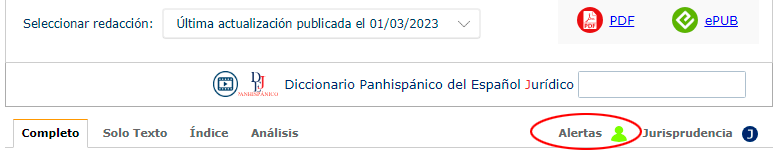 Si lo desea, usted puede suscribirse a un servicio de alertas de actualización, de carácter gratuito, que le avisará por correo electrónico de que está disponible una nueva versión consolidada del texto que resulte de su interés, mediante la opción "Alertas" que se le ofrece en la parte superior derecha de la pantalla.