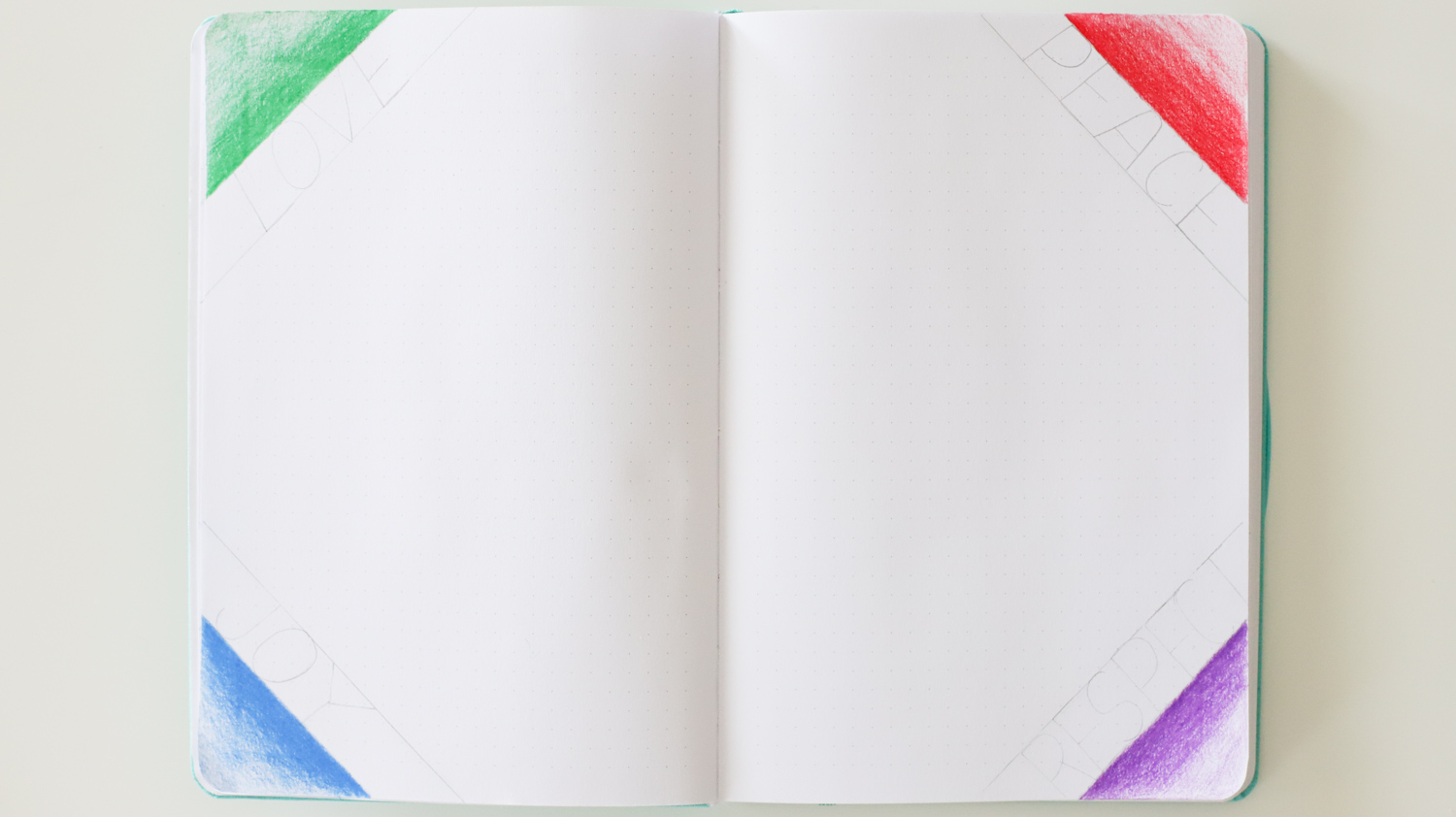 Think about some of your favorite words and sketch them underneath the corners. I chose to write Love, Joy, Peace, and Respect.
