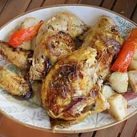 Pollo asado mariposa con salsa de naranja y miel