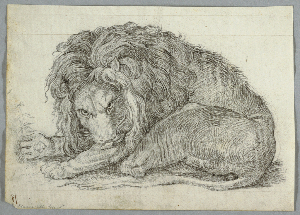 Drawing, Study of a Lion, ca. 1815; Italy; charcoal on paper; H x W: 30.6 × 21.8 cm (12 1/16 × 8 9/16 in.); Museum purchase through gift of various donors; 1901-39-512