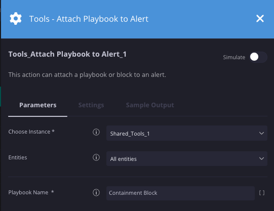 In this scenario, we’re attaching a block called “Containment Block” to the current alerts in the case.