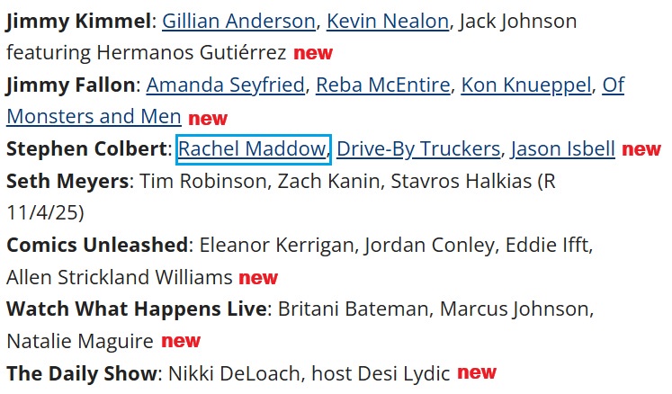 DVR alert - Rachel Maddow is the special guest on Stephen Colbert's Late Show tonight