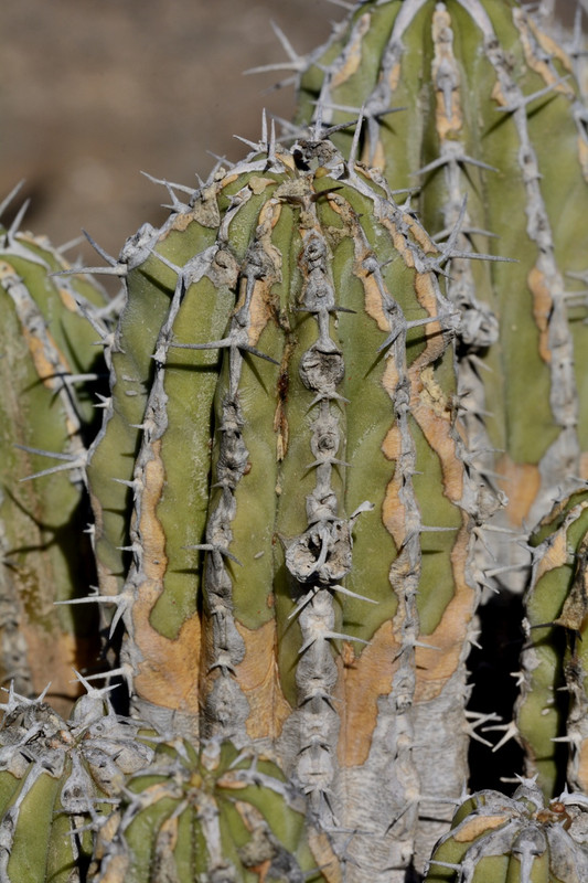O primeiro exemplar que vimos de Euphorbia handiensis, endemismo da Península de Jandía, estava guardado por uma cabrinha. Mal afastámos o olhar, prosseguiu com o paciente mordiscar da base da planta. Julgámos, portanto, o caso mal parado. Mas não: logo depois surgiu uma montanha cheia de pés desta eufórbia, vigorosos e sem dentadas. Era Dezembro e não estavam em flor; fosse outro o mês, e o cenário seria o de um jardim, ainda que concebido por alguém que só gosta de uma planta.