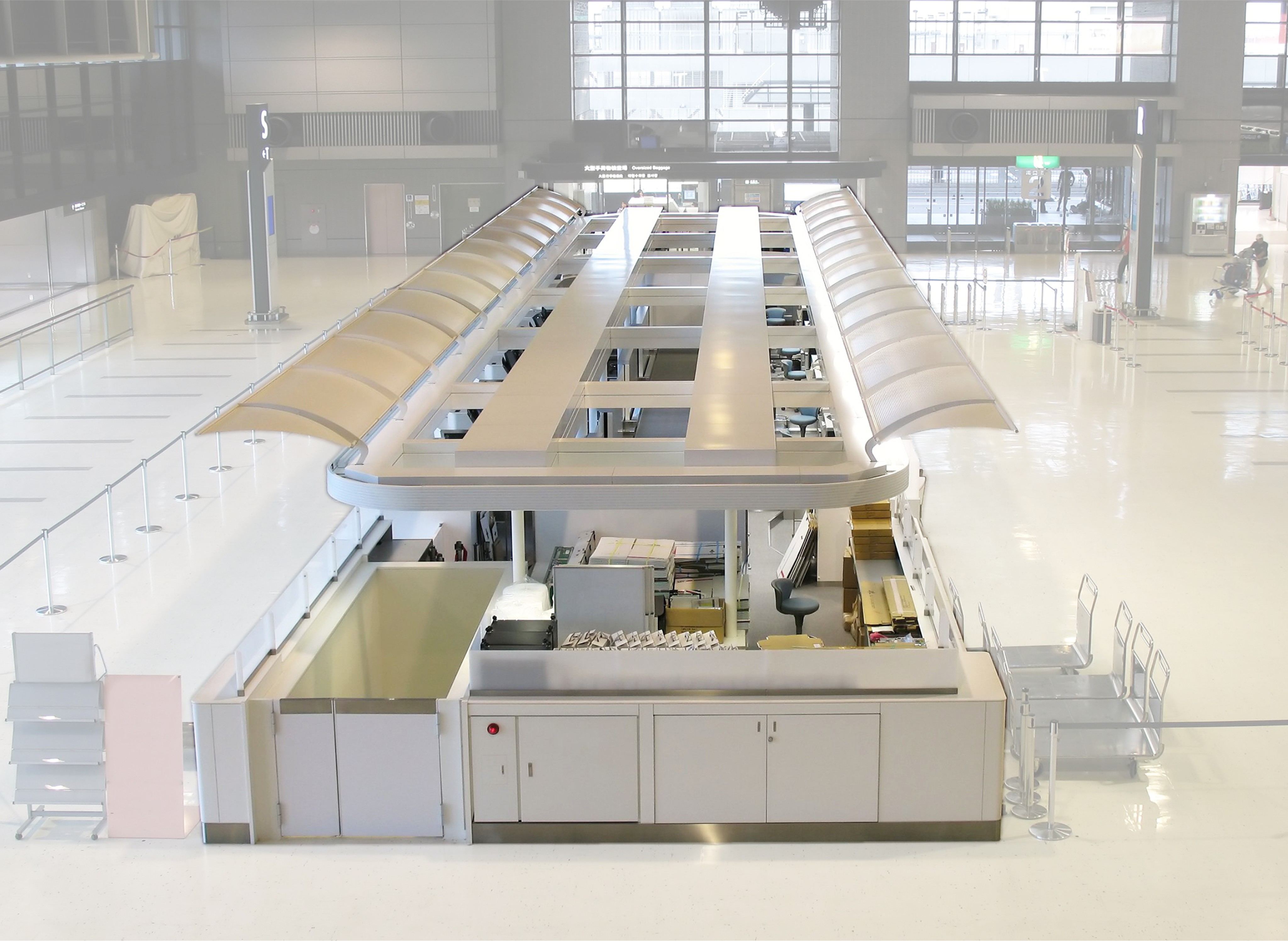 The area behind the check-in counter is effectively non-public. However, this area facilitates the "...exchange [of] goods/services with a pedestrian...". For aesthetic reasons it should not be mapped as a "nonpublic" Unit. Instead, the area should be captured as follows: