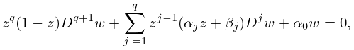 16.8.4 zq⁒𝐷q+1w+βˆ‘j=1qzjβˆ’1⁒(Ξ±j⁒z+Ξ²j)⁒𝐷jw+Ξ±0⁒w=0,