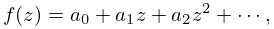 For a series there is a number , , such that the series converges for all in and diverges for in . The circle is called the circle of convergence of the series, and is the radius of convergence. Inside the circle the sum of the series is an analytic function . For in (), the convergence is absolute and uniform. Moreover,