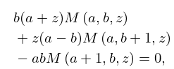 13.3.3 (ab+1)M(a,b,z)aM(a+1,b,z)+(b1)M(a,b1,z) =0,