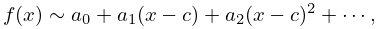 means that for each n, the difference between f(x) and the nth partial sum on the right-hand side is O((xc)n) as xc in 𝐗.