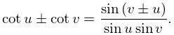 4.21.11 cotu±cotv =sin(v±u)sinusinv.