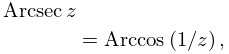 The principal values of the inverse cosecant, secant, and cotangent are given by