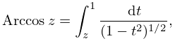 The principal values (or principal branches) of the inverse sine, cosine, and tangent are obtained by introducing cuts in the -plane as indicated in Figures 4.23.1(i) and 4.23.1(ii), and requiring the integration paths in (4.23.1)–(4.23.3) not to cross these cuts. Compare the principal value of the logarithm (§4.2(i)). The principal branches are denoted by , , , respectively. Each is two-valued on the corresponding cuts, and each is real on the part of the real axis that remains after deleting the intersections with the corresponding cuts.