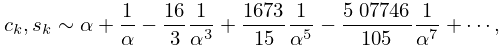 where α=kπ for ck, and α=(k+12)π for sk. For these results, together with the next three terms in (6.13.2), see MacLeod (2002a). See also Riekstynš (1991, pp. 176–177).