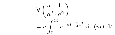 7.19.11 𝖵(ua,14a2)=a0eat14t2sin(ut)dt.