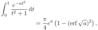 7.7.5 01eat2t2+1dt=π4ea(1(erfa)2),